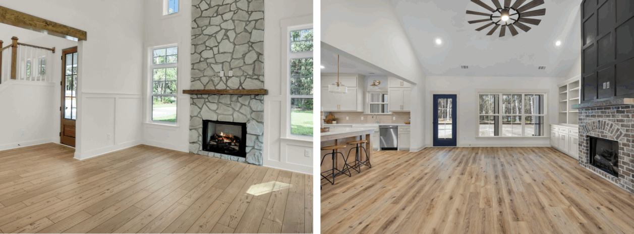 We offer a Variety of Types, Colors, and Styles of Flooring – Water Resistant Laminate, Luxury Vinyl Plank, Engineered Hardwood, and Hardwood. We also Stock the Most Popular Flooring Brands of CoreTec, Create, McCoy Home, Shaw Flooring, and Titan Surfaces starting as low as $1.39/SF.